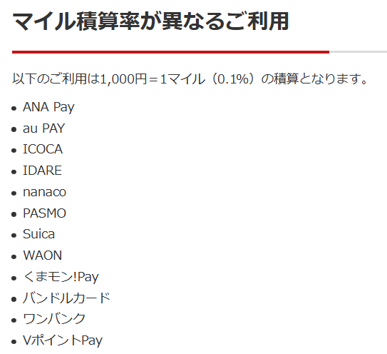 JAL Payは以下の使用の場合は、還元率が0.1%に下がるので注意が必要です。