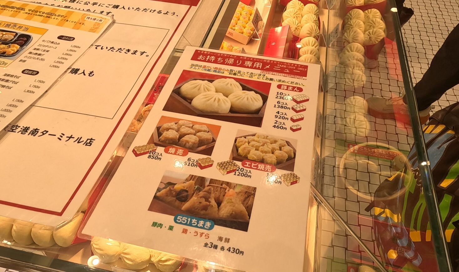 着いたら、大阪といえばの551肉まんを買いに行きました。伊丹空港内に2店舗ありますが、ANA側の南ターミナルの店舗の方が空いています。(チルドは空港到着ロビー店のみ)